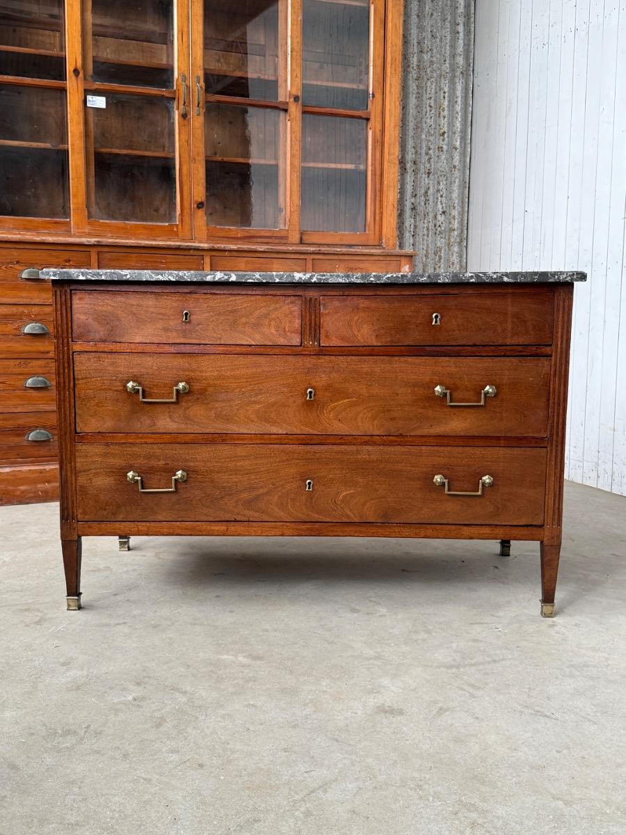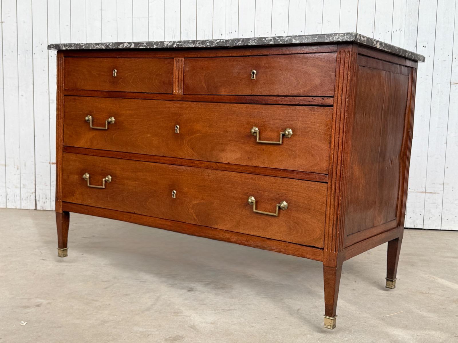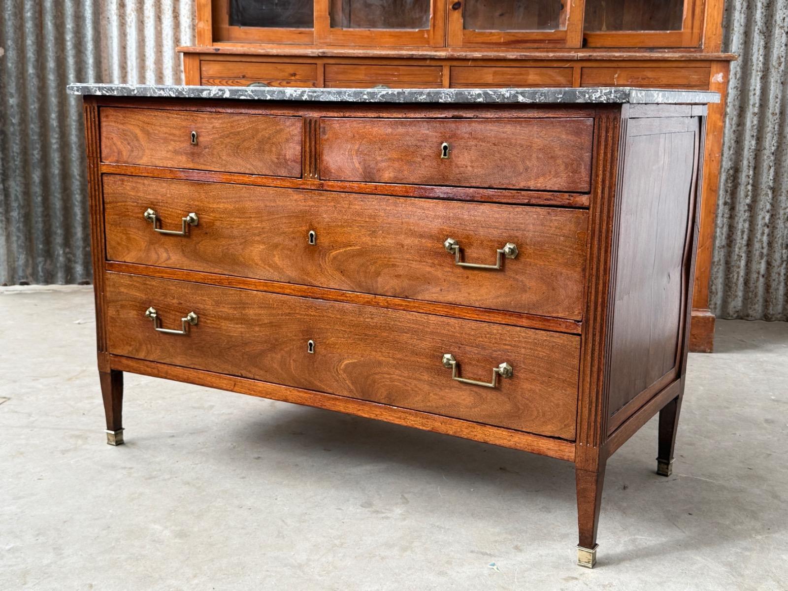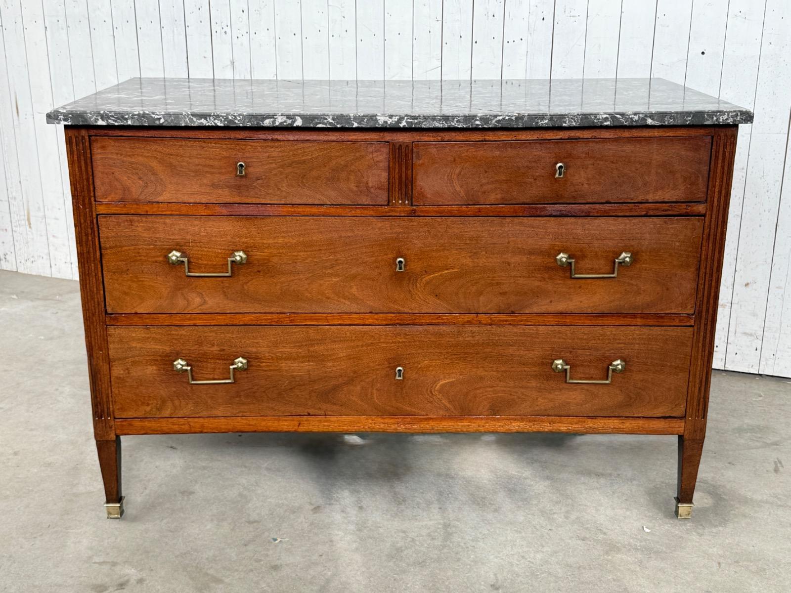 Louis XVI / Directoire noten 2 over 2 commode, ladekast. messing beslag en verfraaiingen.
