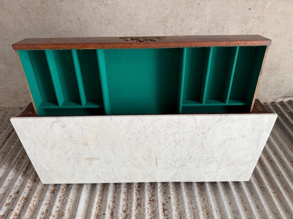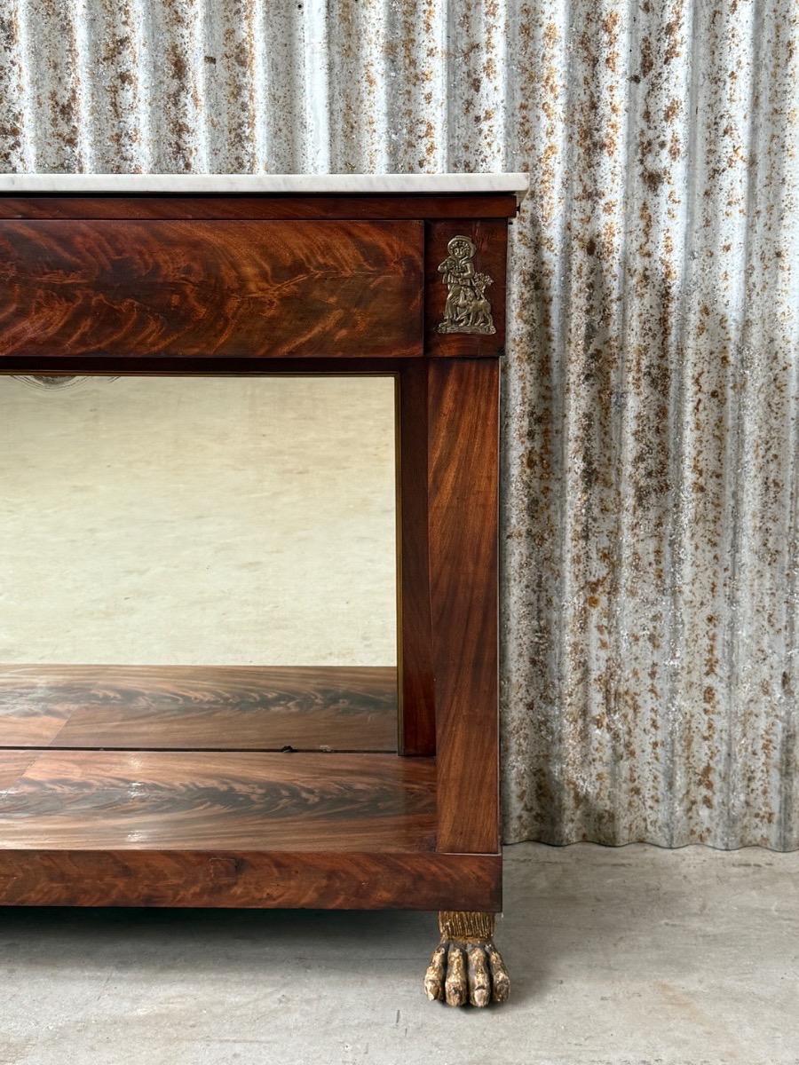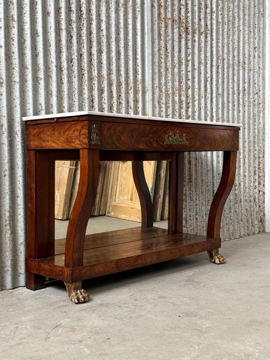 Mahonie consoletafel, trumeau met Bianca Carrara marmer, besteklade en spiegel.