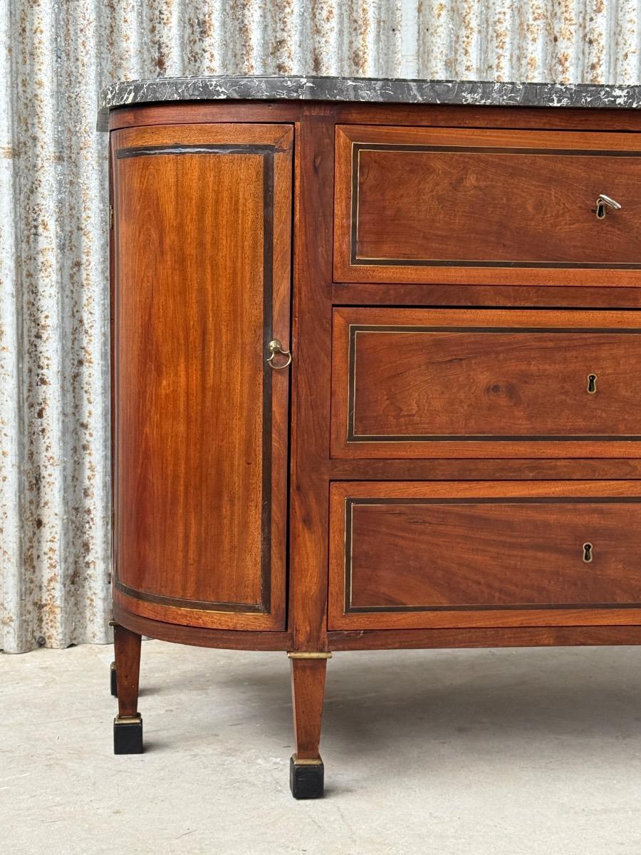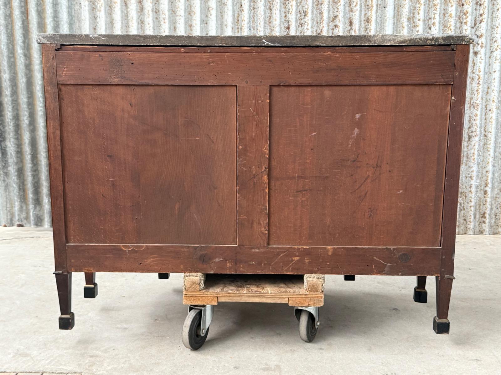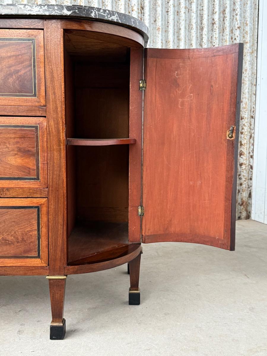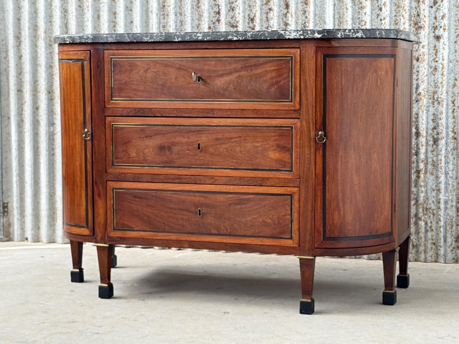 Onder het 3 cm (!!) dikke St. Anna marmer centraal 3 flinke laden met werkende oorspronkelijke sloten en sleutel. Aan weerskanten een kwart ronde deur met daarachter een legplankje.
