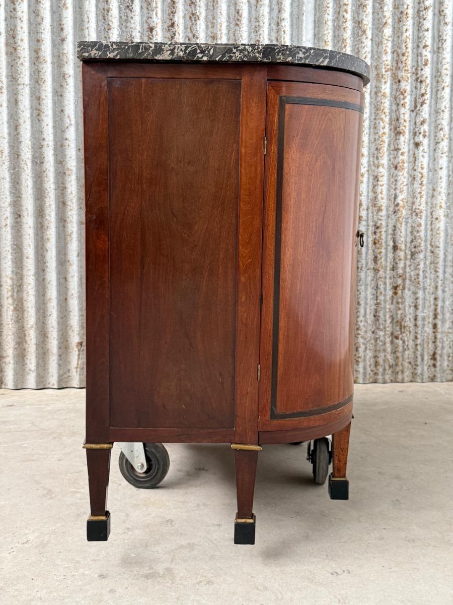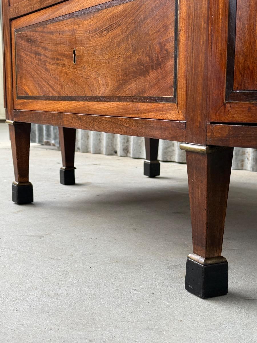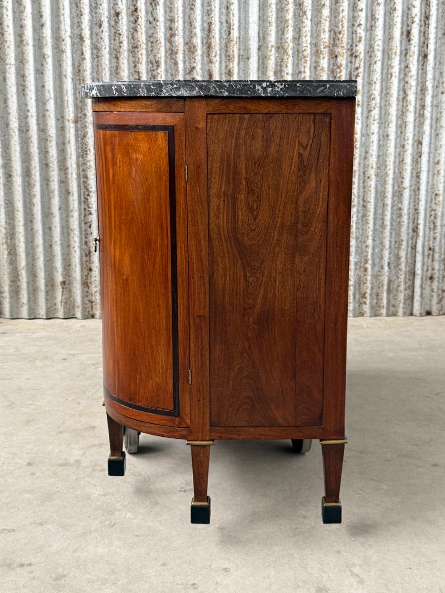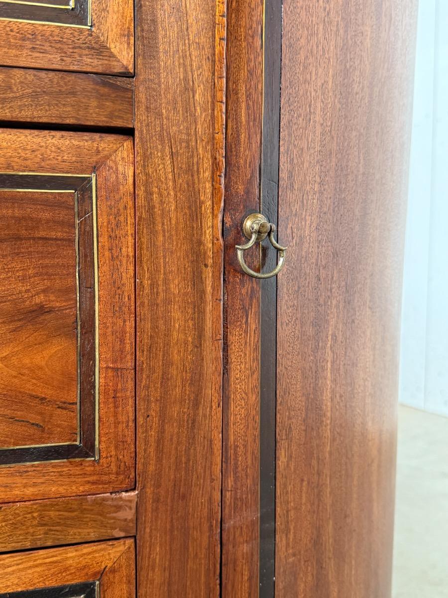 Onder het 3 cm (!!) dikke St. Anna marmer centraal 3 flinke laden met werkende oorspronkelijke sloten en sleutel. Aan weerskanten een kwart ronde deur met daarachter een legplankje.