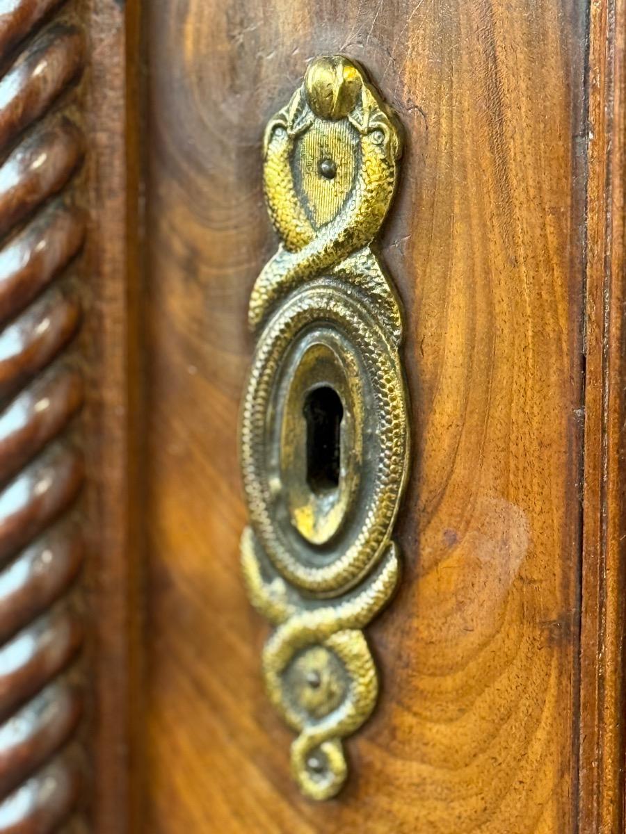 Mahonie Empire kabinet, met oorspronkelijk vuur verguld latoen koper beslag.