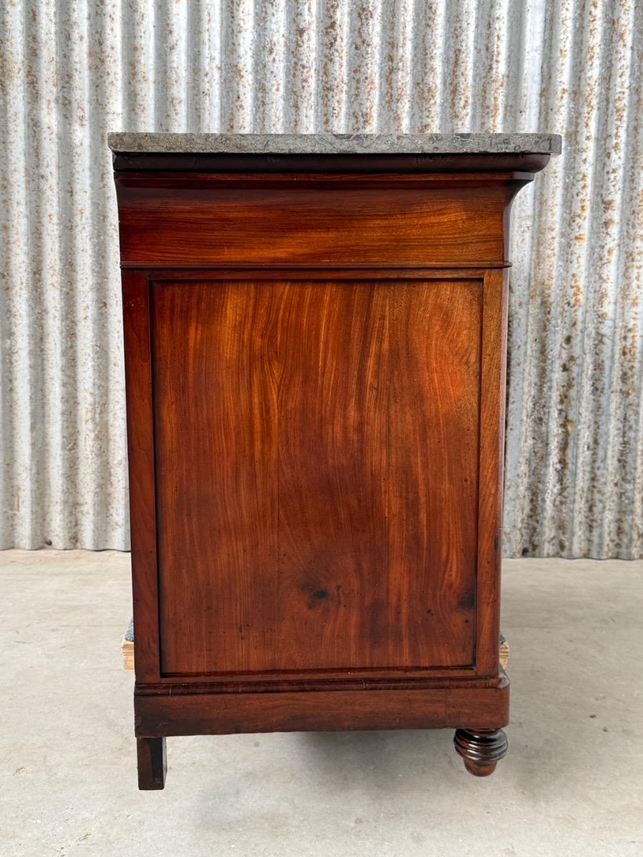Commode met 4 laden waarvan 1 lade in de kap. Midden 19e eeuw met messing entré beslag, alle (oorspronkelijke) sloten aanwezig en werkend met een sleutel.