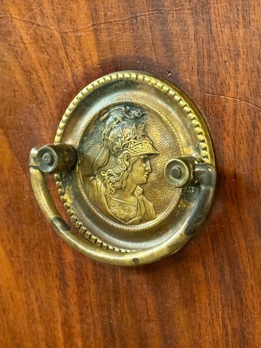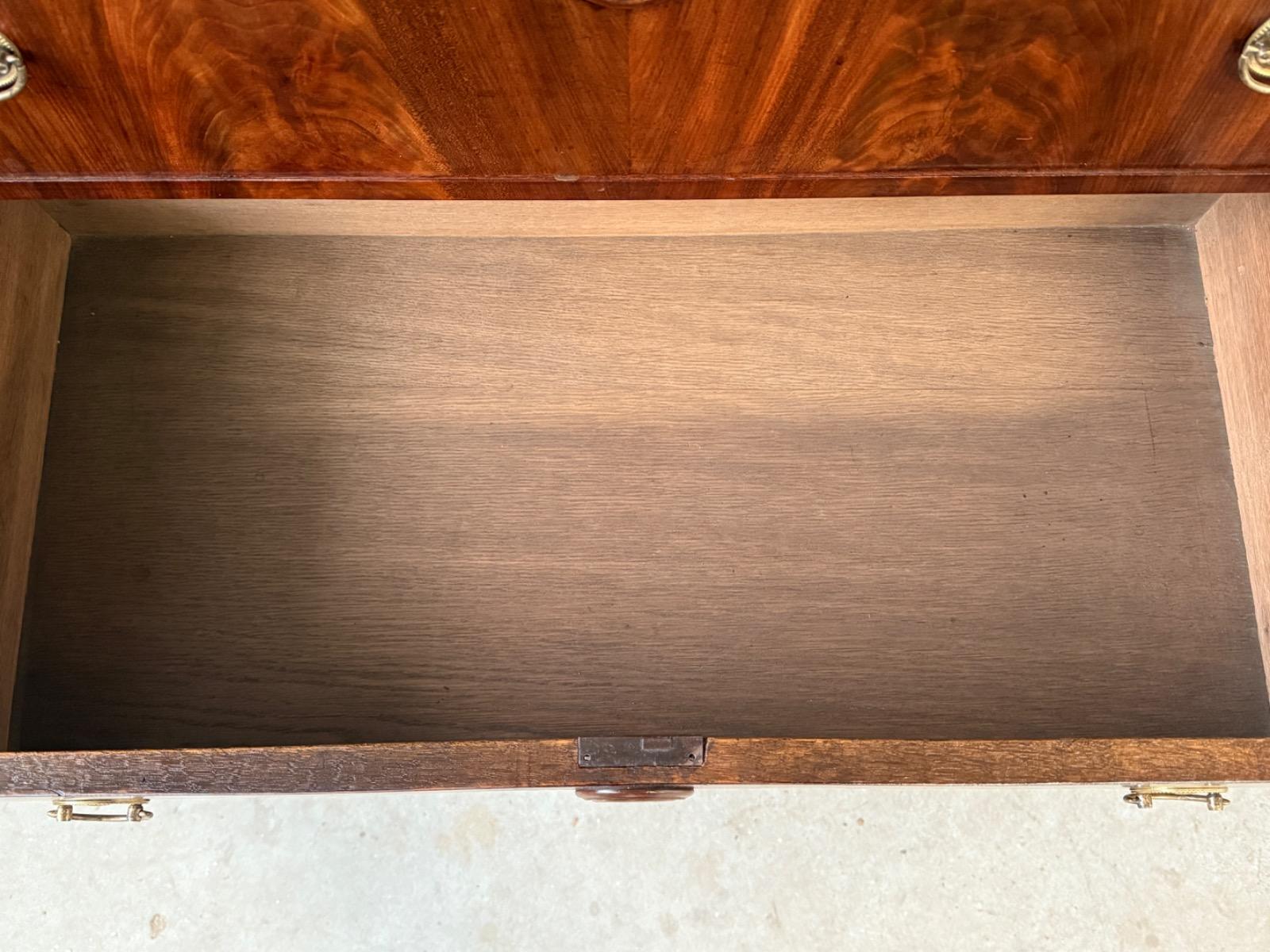 Hollands empire hoge ladekast of commode, met fraai over alle laden doorlopend mahonie fineer.
