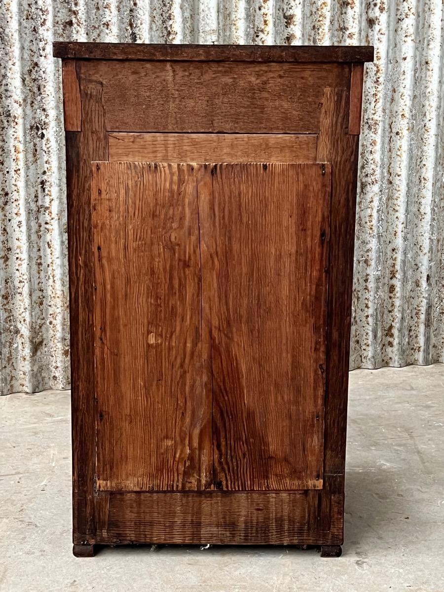 Fraai gespiegeld bloem mahonie op bovenblad en onderstel. Zeer fraaie politoer met was patina.