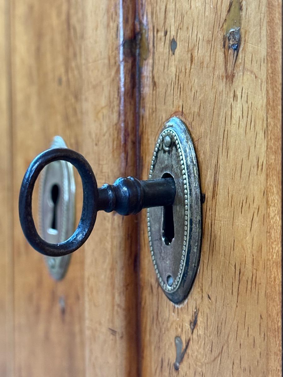 Oorspronkelijk vuur verguld messing beslag, de kapitelen.