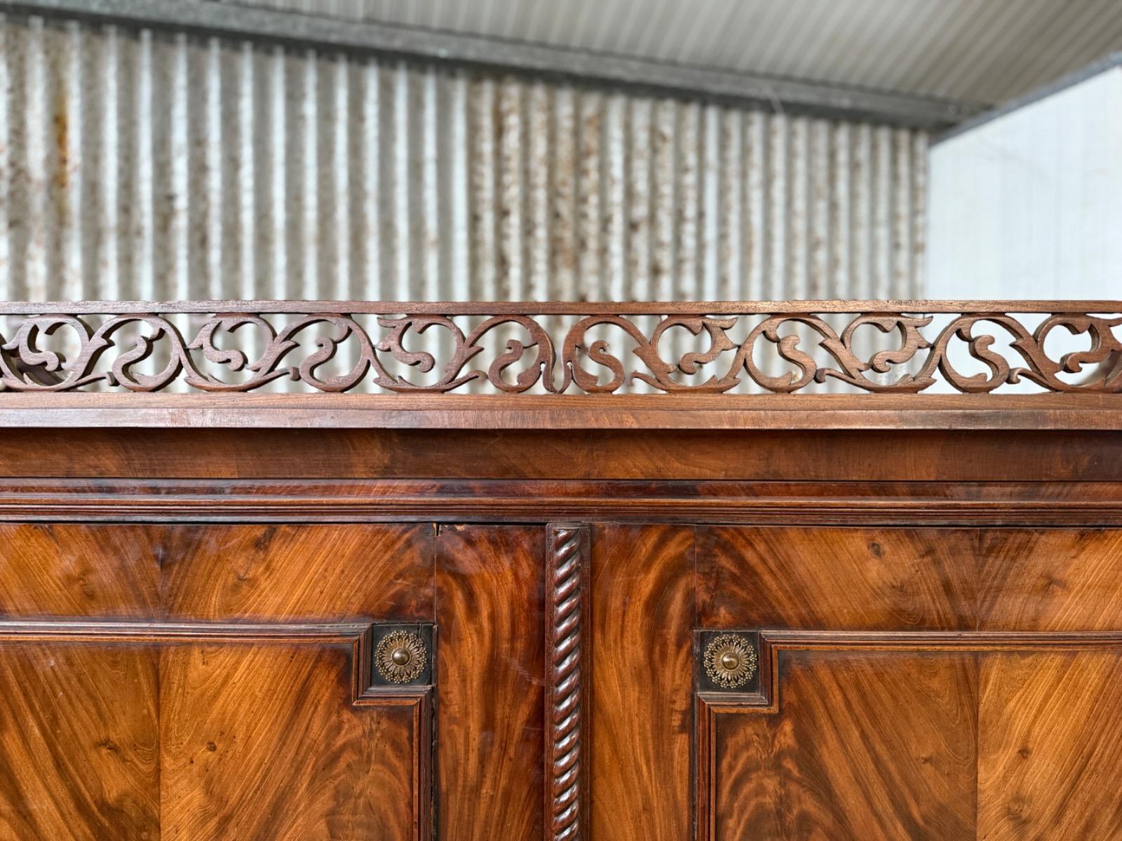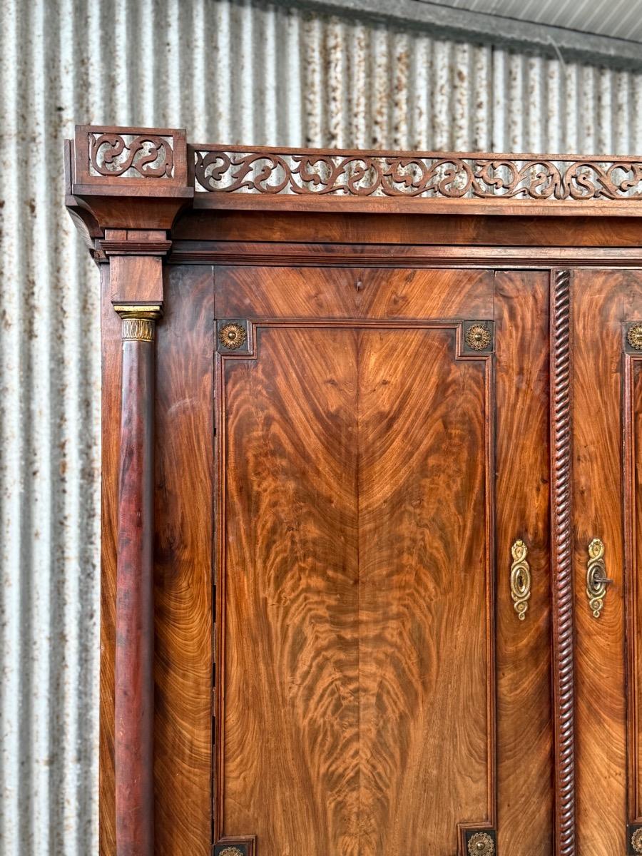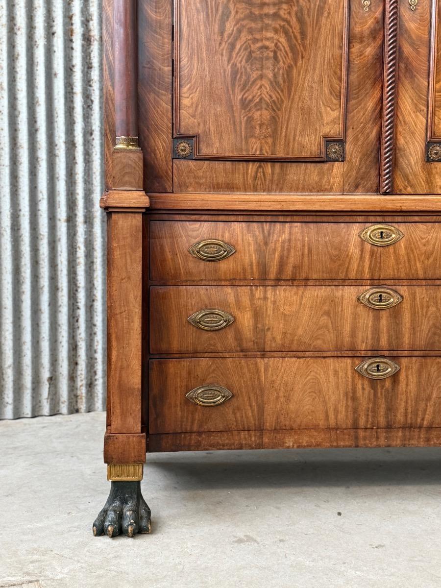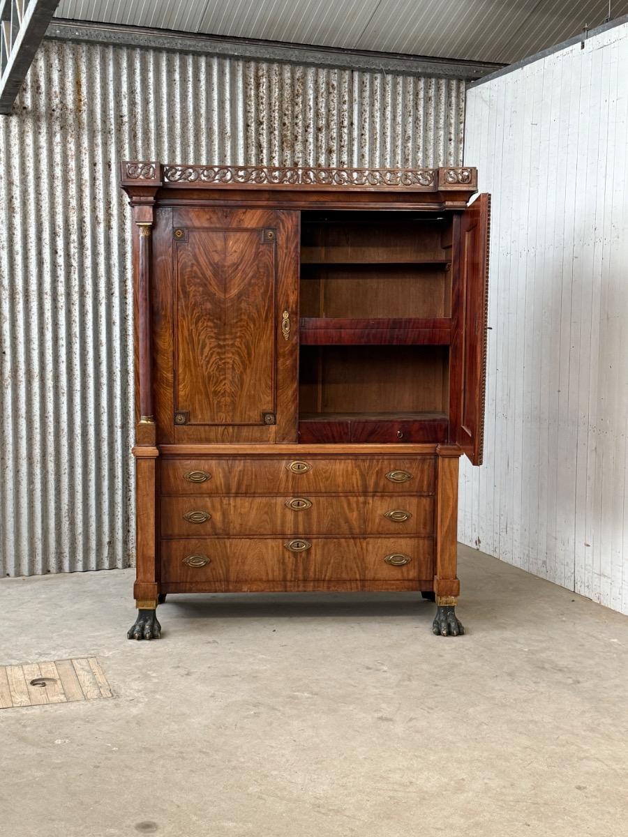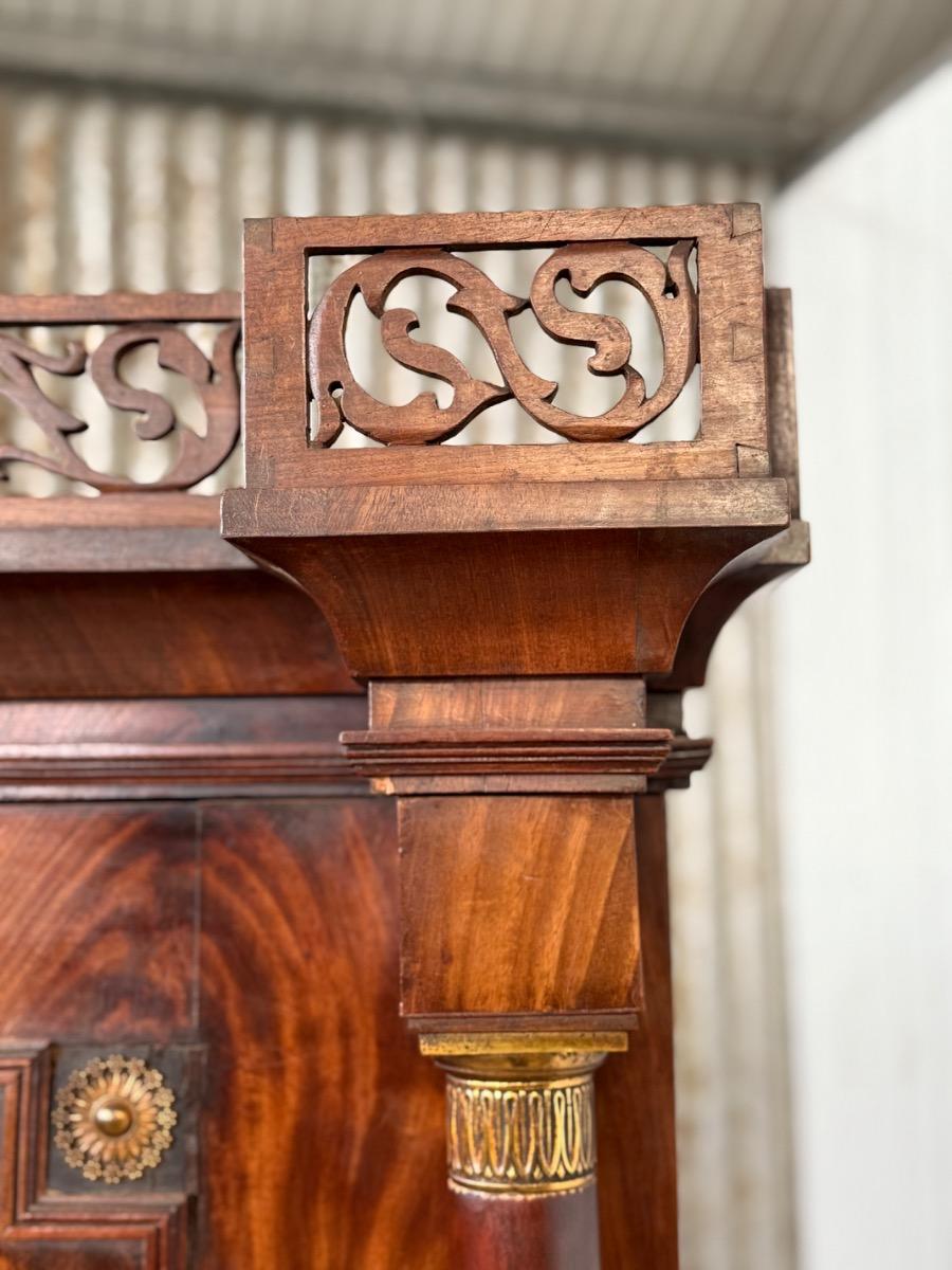 Mahonie Empire kabinet, met oorspronkelijk vuur verguld latoen koper beslag.