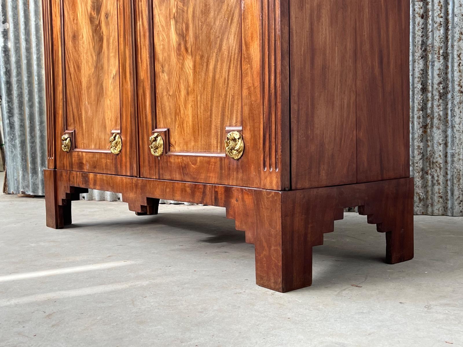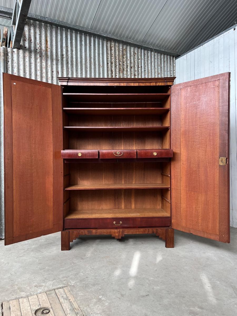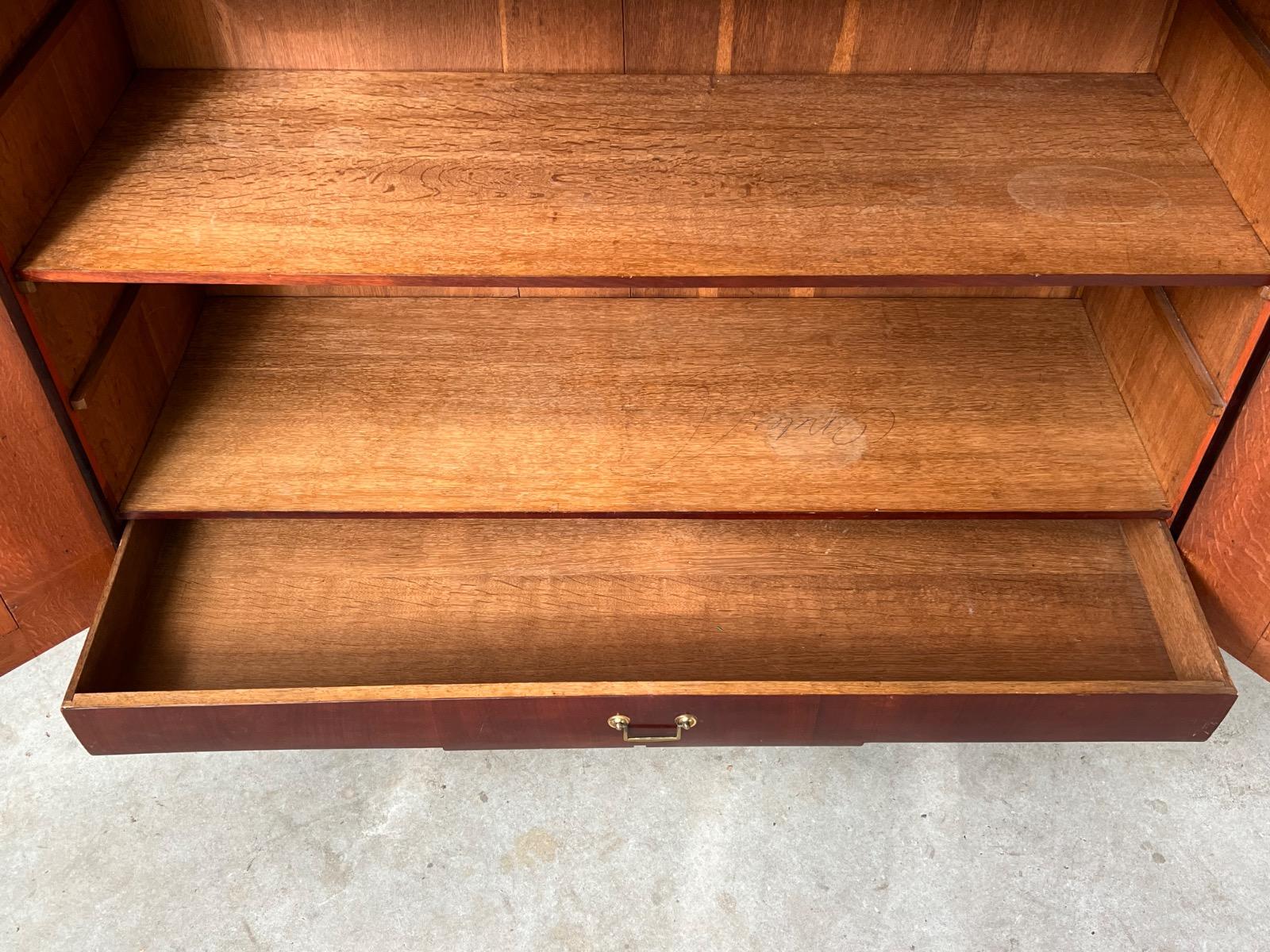 Vol eiken houten mahonie gefineerde linnenkast of boeken kast met interne laden.